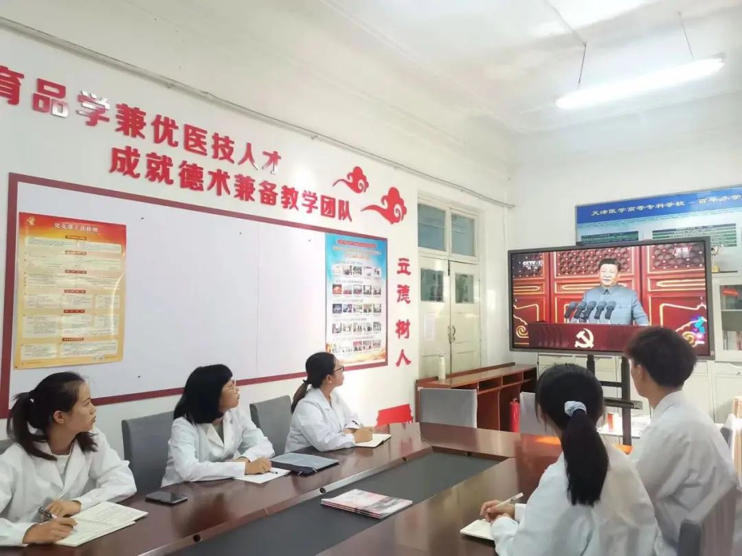 天津市医学高等专科学校组织全体校领导和教职工在学术报告厅集中观看,学生代表在分会场观看。习近平总书记在庆祝中国共产党成立100周年大会上的讲话在全校领导、师生中引起热烈反响。