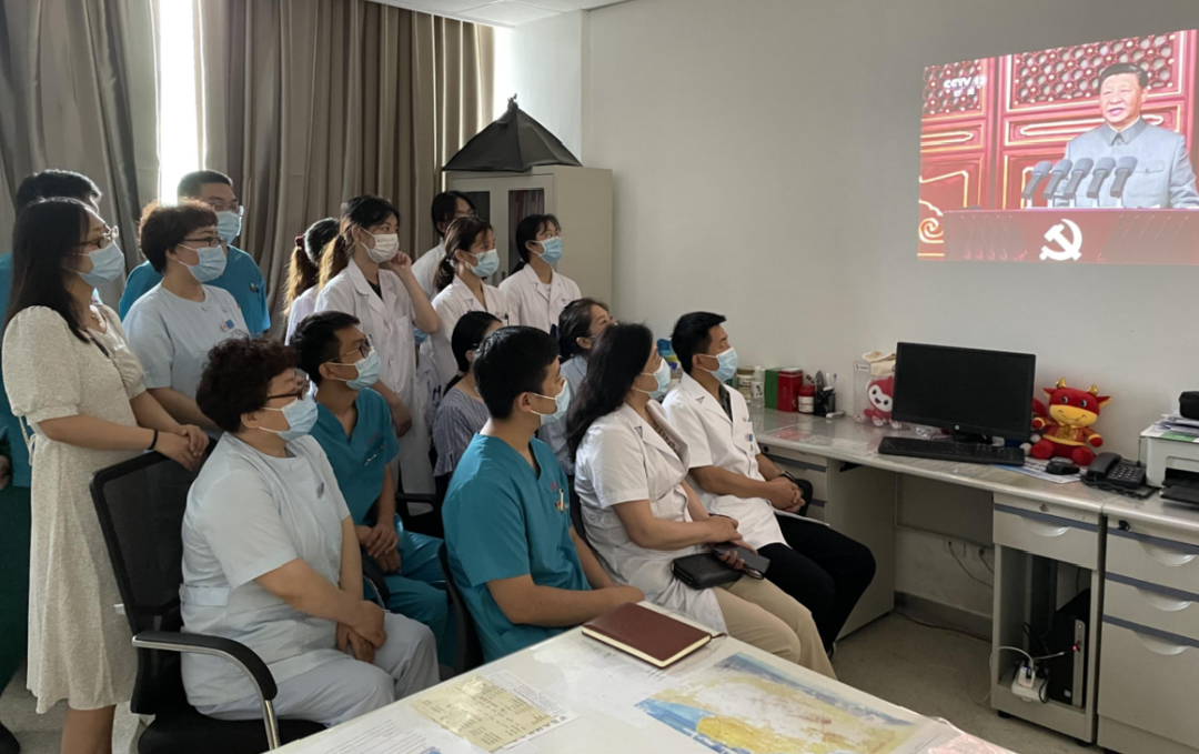 天津市天津医院党委组织班子成员,职能科室中层干部,部分支部书记等集中收看了庆祝中国共产党成立100周年大会,仔细聆听了习近平总书记发表的重要讲话。同时,医院各党支部结合工作实际以不同的形式组织收看、收听。