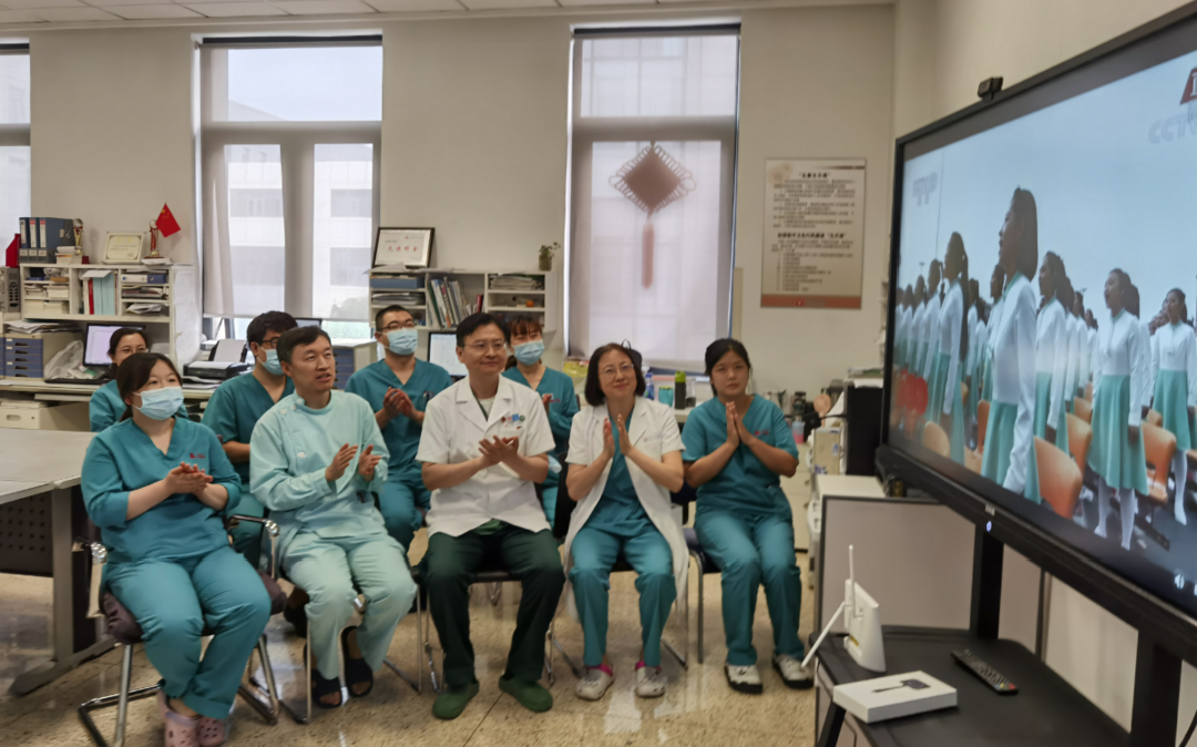 天津市卫生健康委员会援外办公室集体收看庆祝中国共产党成立100周年大会电视直播。