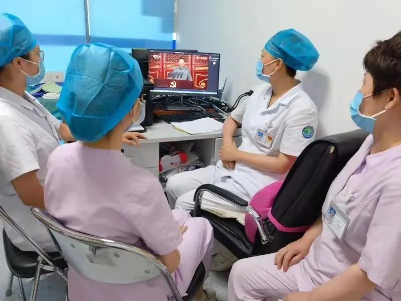 市胸科医院各科室、各支部党员、民主党派、群团组织代表分别收看庆祝中国共产党成立100周年大会。