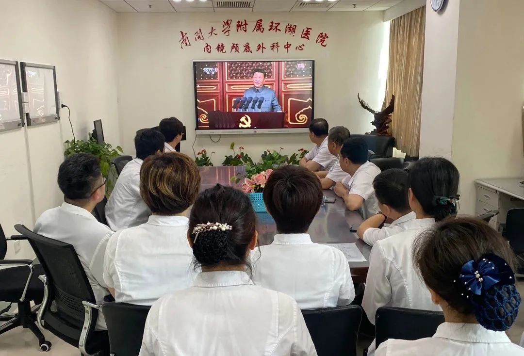市环湖医院组织党员以及民主党派等统一战线成员、职工群众集中收看庆祝中国共产党成立100周年大会。医院党政领导班子成员、职能中层等认真学习习近平总书记在大会上的重要讲话,引起强烈共鸣和热烈反响。