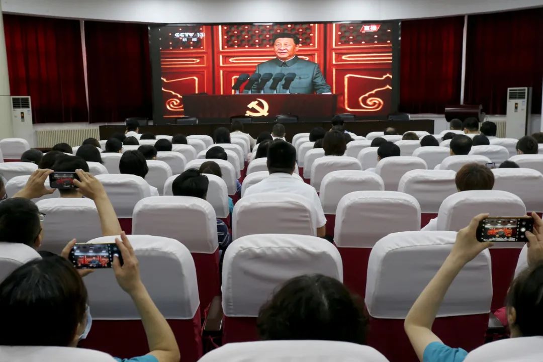 市第四中心医院支部书记、党员代表集中收看庆祝中国共产党成立100周年大会直播。