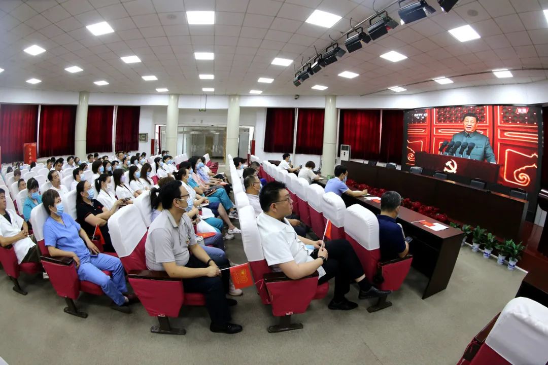 市第二人民医院领导班子成员、各支部书记、行政后勤支部党员和职工群众共80余人集中收看庆祝中国共产党成立100周年大会实况直播,认真学习习近平总书记在大会上的重要讲话。