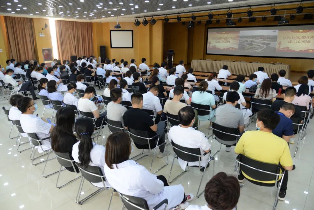 天津市口腔医院领导班子成员、所有支部书记、部分党员、民主党派人士、群众集中观看庆祝中国共产党成立100周年大会。