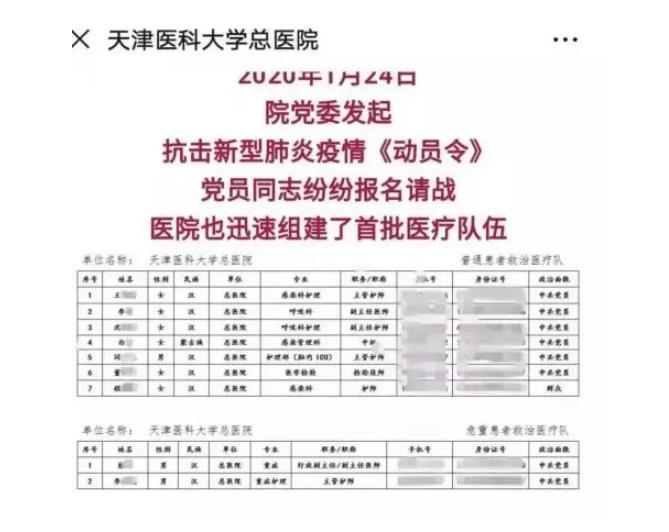 一天之前,天津医大总医院党委发布致全院党员干部全体职工动员令,要求全体党员干部和医务工作者立刻进入紧急状态,取消春节休假,坚持在岗,并要“从我做起,从现在做起,全力以赴做好疫情防控工作”。