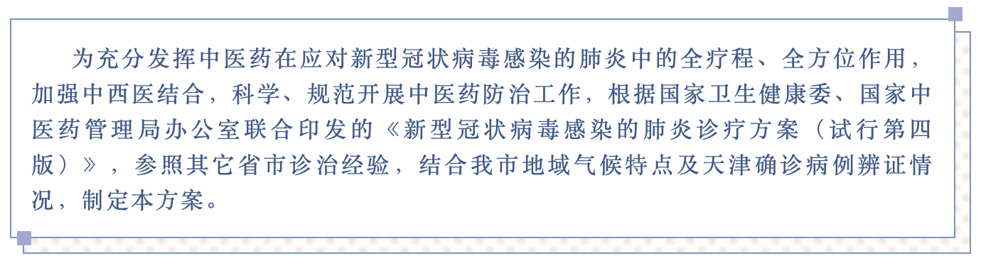 天津市新型冠状病毒感染的肺炎中医药预防方案(试行第二版)