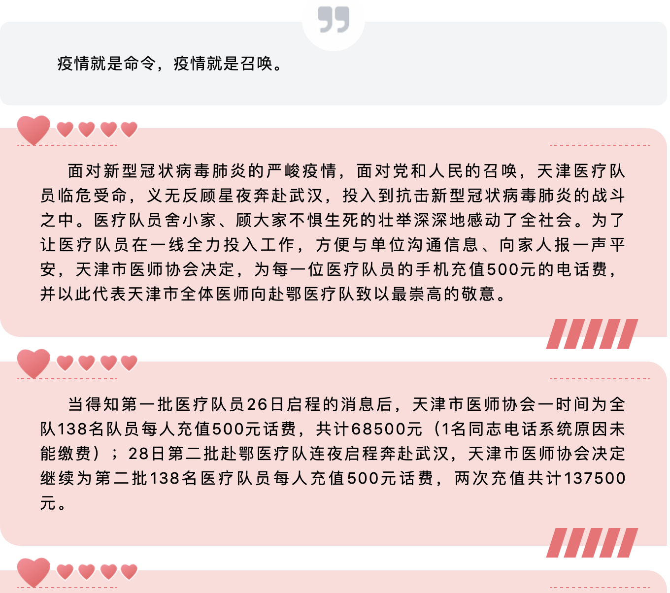 千里战病魔 话费寄深情——天津市医师协会为赴鄂医疗队员提供电话费