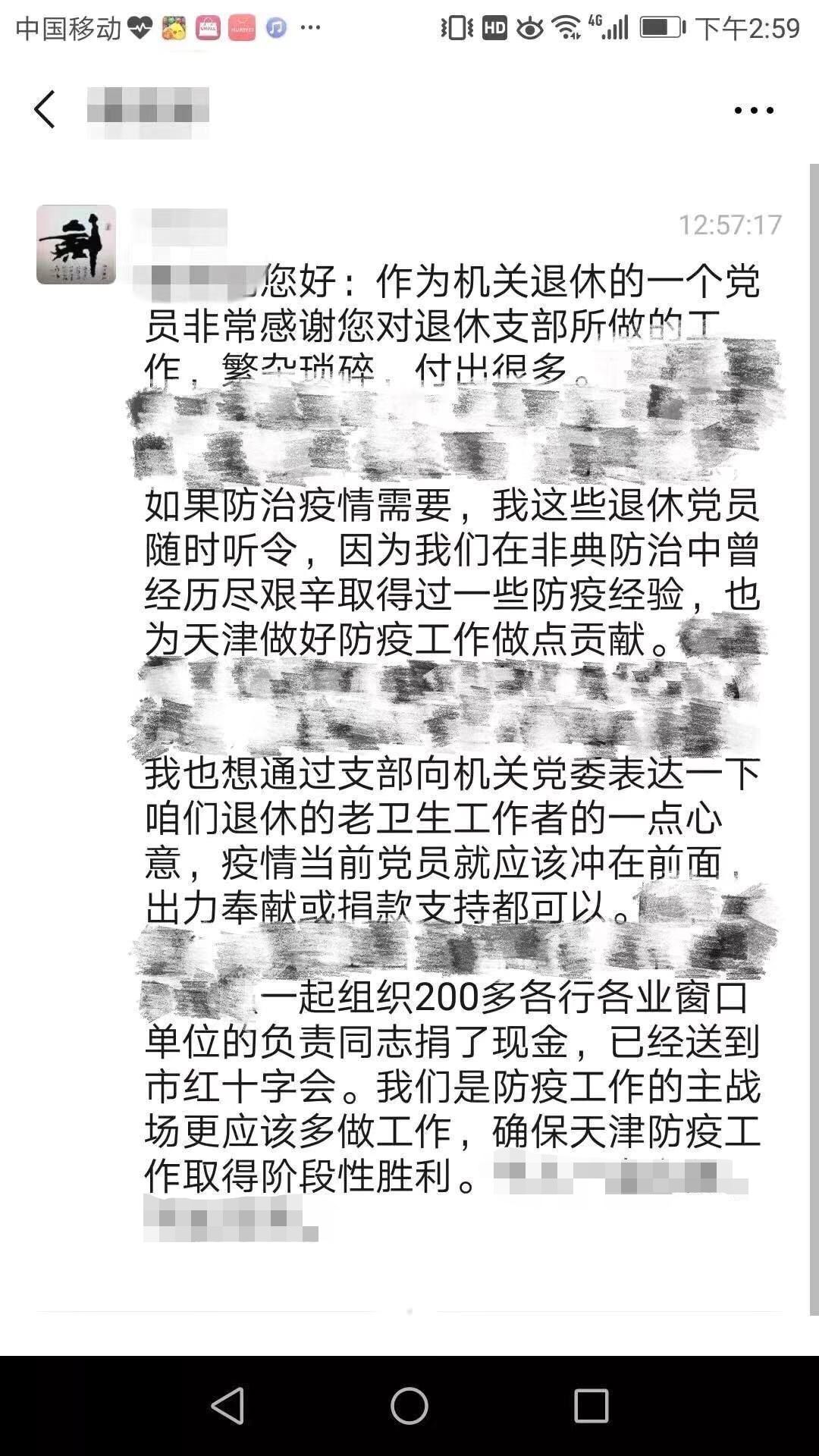 新型冠状病毒感染的肺炎疫情发生以来,天津市卫生健康系统离退休老同志、老党员不忘初心、牢记使命,积极发挥余热,支援一线,投身战“疫”,用实际行动践行入党时的铿锵誓言,以对党和国家的赤诚情怀,诠释“离岗不离党、退休不褪色”的可贵精神,汇聚成一道弘扬时代主旋律、传递社会正能量的暖心“风景线”。