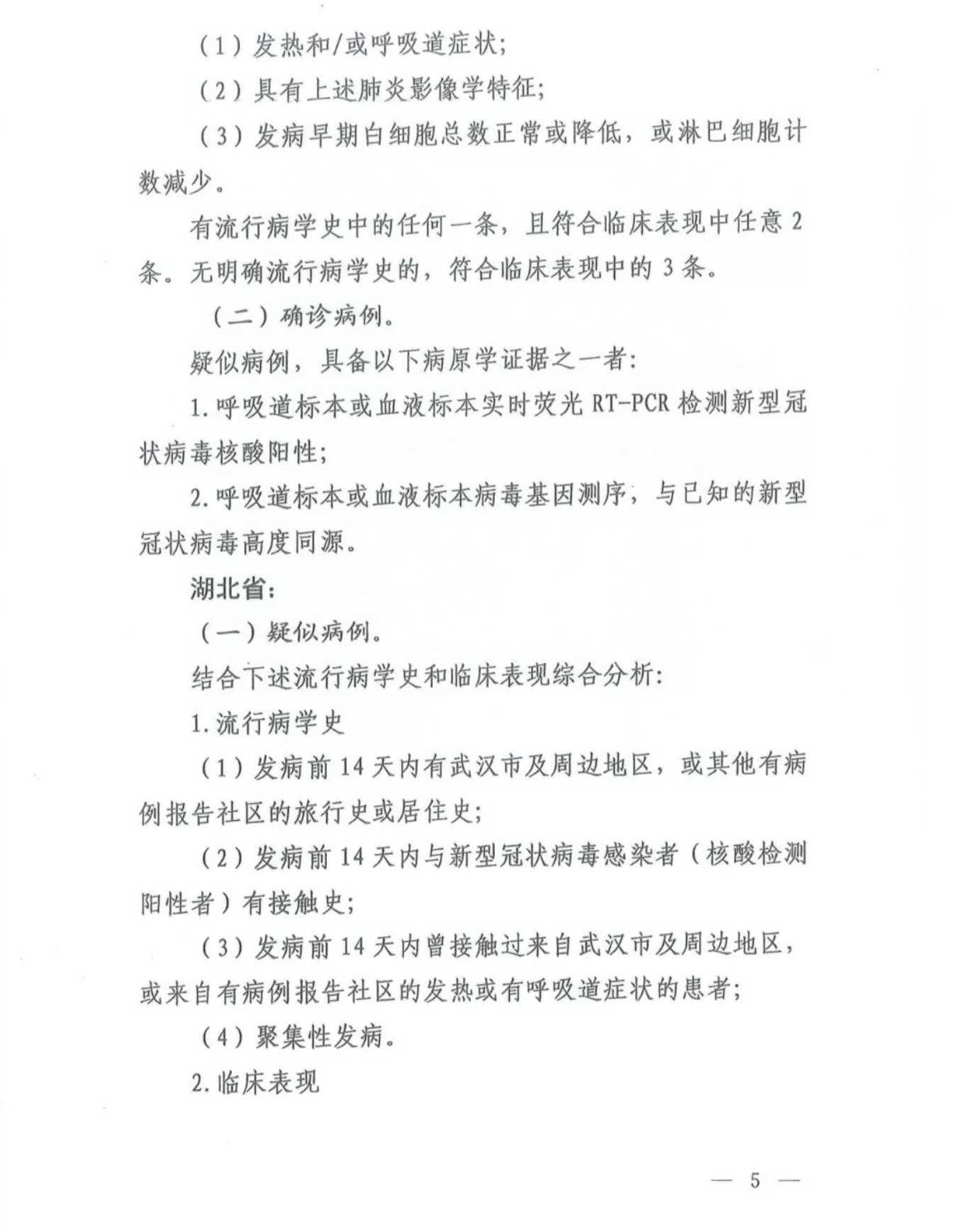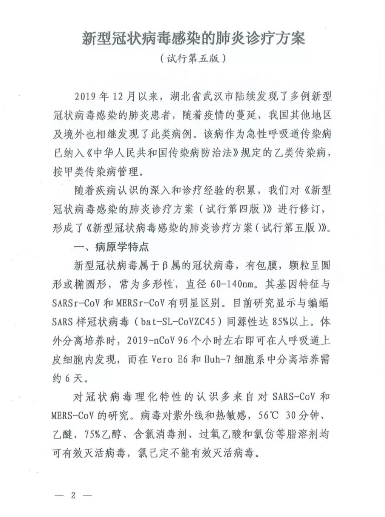 新型冠状病毒感染的肺炎诊疗方案(试行第五版)