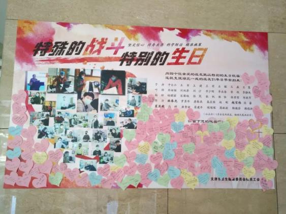 ——一面祝福板报。在精心装扮的生日祝福板报上,战友们的“战疫”照片排成了巨大“心”形,寓意着团结一心,同战疫情;精心设计的心形留言卡,带着各处室同志们的温暖祝福汇聚一起,环绕在“大心”周围,代表着心心相印,共克时艰的信心和决心。