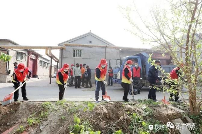西青区组织农村全域清洁化环境卫生大清整活动暨第32个爱国卫生月集中劳动。深入扎实推进西青区创建全国文明城区工作,打赢新冠肺炎疫情防控和农村人居环境整治两场硬仗;全面清理私搭乱建违章建筑、乱堆乱放的柴草、杂物,清扫村居生活垃圾投放点周边和垃圾死角,清除小广告、乱涂乱画墙体;围绕路边、河边、田边、村边、屋边“五边”开展清洁整治,聚焦火车轨道、高速公路、国道及乡村公路等道路两侧、片林等重要部位,捡拾、清理各类积存垃圾、塑料袋等污染物。