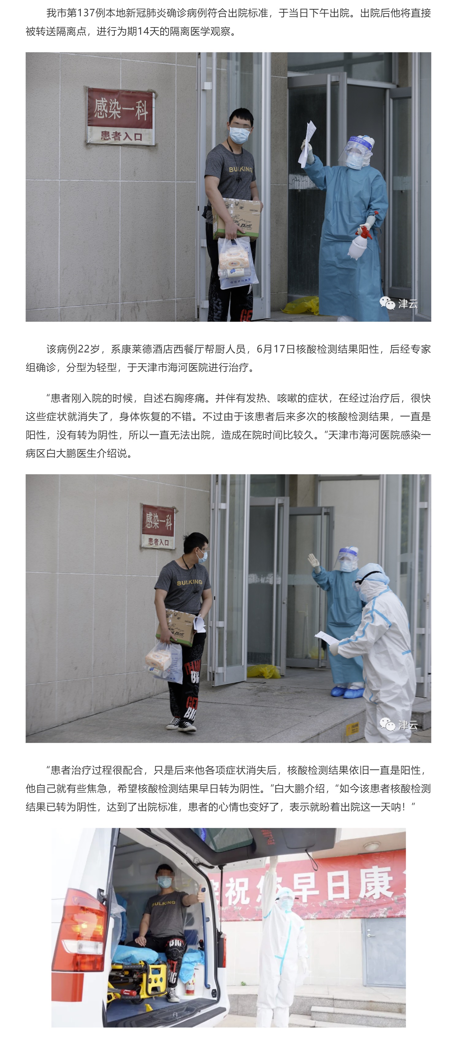 天津现有最后一例本地新冠肺炎确诊病例今日出院!