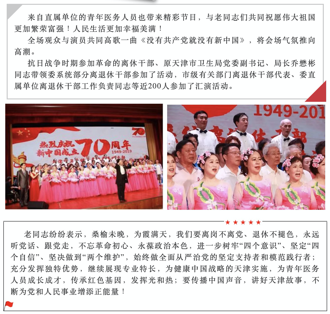 【不忘初心 牢记使命】初心不移绘华章 桑榆未晚再续航——市卫生健康委组织离退休干部举行庆祝中华人民共和国成立70周年文艺汇演