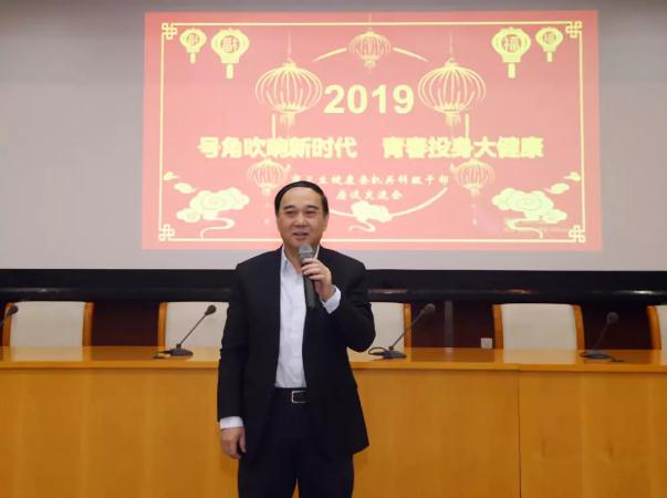 市卫生健康委党委书记、主任王建国在座谈中肯定了在2018年机关青年干部为医药卫生体制改革、对口支援、基层卫生、改善医疗服务、京津冀医疗卫生协同发展、学科人才、全面从严治党等方面所做的基础性工作,向青年干部表示了诚挚问候,提出了殷切期望。鼓舞大家珍惜年轻时光、珍惜好平台、传递正能量,收获是人生成功的金子,在“滚石上山、爬坡过坎”的历程中,留下收获、留下经历、积累信心,天上没有飞来的成就,没有轻轻松松得来的成果,遇到困难要勇于面对、克服困难,要带着理想和情怀去干事创业,情怀是一种责任、一种理想、一种担当、一种心态,并祝愿青年干部2019年阖家幸福、新春快乐、万事如意。