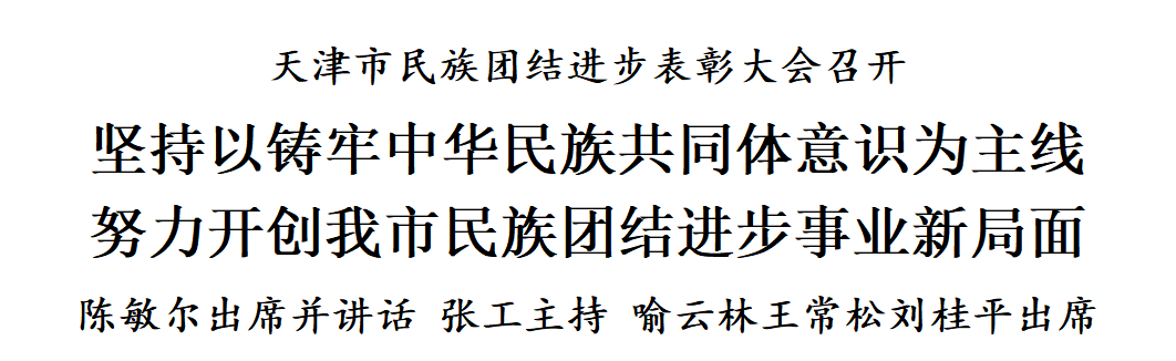 12月23日,天津市民族团结进步表彰大会召开。市委书记陈敏尔出席并讲话。他强调,要深入学习贯彻习近平总书记关于加强和改进民族工作的重要思想和视察天津重要讲话精神,全面落实全国民族团结进步表彰大会精神,坚持以铸牢中华民族共同体意识为主线,努力开创我市民族团结进步事业新局面,凝聚起全面建设社会主义现代化大都市、奋力谱写中国式现代化天津篇章的强大力量。