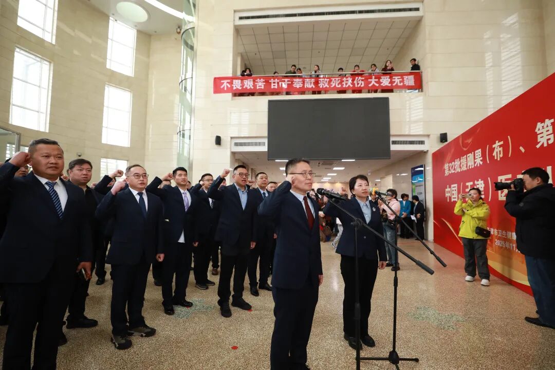 2025年11月6日下午,第32批援刚果(布)、第27批援加蓬中国(天津)医疗队出征仪式在市医学考试中心举行。市卫生健康委副主任李洁出席仪式并作动员讲话。各派员单位负责同志参加仪式。