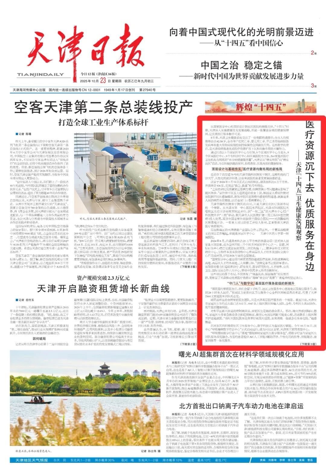 这些项目的落子布局,不仅体现了“强基筑高、拓面提质”的发展思路,更彰显了天津推动优质医疗资源从“高峰”耸立向“高原”广袤延伸的坚定决心。