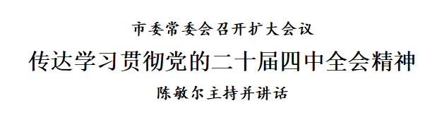 10月24日上午,市委常委会召开扩大会议,传达学习党的二十届四中全会精神,研究我市贯彻落实措施。