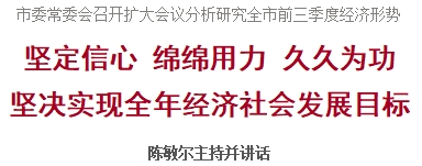 10月24日下午,市委常委会召开扩大会议,听取我市前三季度经济运行、政治安全、社会稳定和意识形态领域工作情况汇报,分析当前形势,研究部署下步工作。