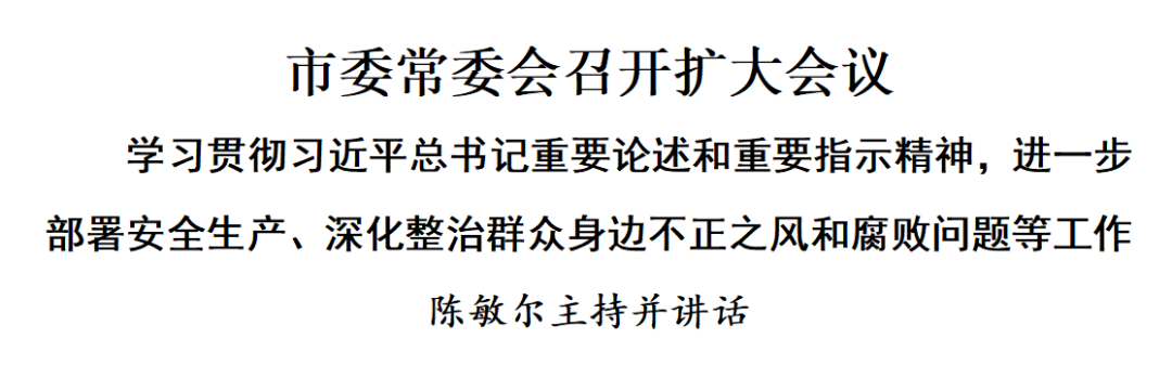 10月30日,市委常委会召开扩大会议,学习贯彻习近平总书记关于安全生产的重要论述和重要指示精神,听取全市群众身边不正之风和腐败问题集中整治工作情况汇报,进一步部署全市安全生产、深化集中整治等工作。