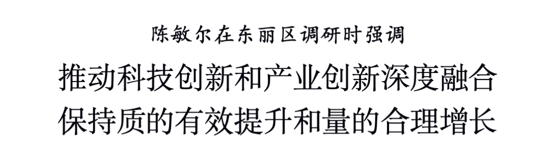11月4日,市委书记陈敏尔前往东丽区调研。他强调,要深入学习贯彻党的二十届四中全会精神,全面落实习近平总书记视察天津重要讲话精神,聚焦经济建设这一中心工作和高质量发展这一首要任务,推动科技创新和产业创新深度融合,不断催生新质生产力,保持质的有效提升和量的合理增长,坚决实现全年经济社会发展目标。