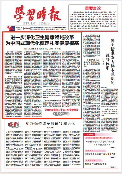 坚持人民至上、生命至上是中国式现代化超越西方现代化的重要特征之一。2035年建成健康中国,重要标志就是卫生健康事业发展不平衡不充分的矛盾有显著改善,我国居民主要健康指标进入高收入国家行列。进一步深化医药卫生体制改革,既要往有利于提升全人群健康水平方向前进,也要往有利于促进均衡发展的方向前进,助力推进全体人民共同富裕。要紧紧围绕贯彻落实全会精神,紧紧围绕新时代党的卫生与健康工作方针要求,持续推动以治病为中心向以人民健康为中心转变,加快实现基本公共卫生服务均等化、基本医疗服务均质化和优质医疗卫生资源配置区域均衡化的目标。