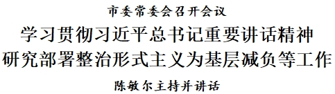 8月29日,市委常委会召开会议,学习贯彻8月23日中央政治局会议和习近平总书记在纪念邓小平同志诞辰120周年座谈会上的重要讲话精神,学习贯彻中共中央办公厅、国务院办公厅印发的《整治形式主义为基层减负若干规定》和中央层面整治形式主义为基层减负专项工作机制会议精神,研究部署有关工作。市委书记陈敏尔主持会议并讲话。