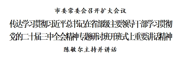 11月4日,市委常委会召开扩大会议,传达学习贯彻习近平总书记在省部级主要领导干部学习贯彻党的二十届三中全会精神专题研讨班开班式上的重要讲话精神。