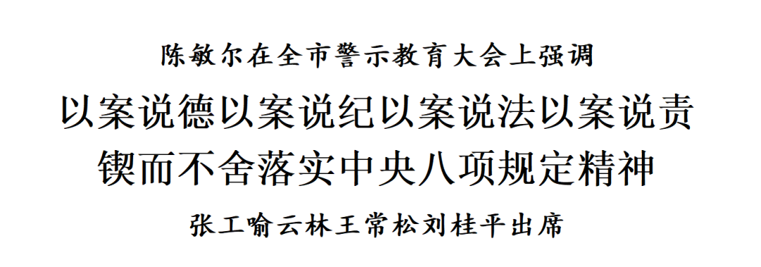 会上,与会同志集中观看了我市深入贯彻中央八项规定精神学习教育警示教育专题片《斩断风腐交织链条》。市委常委、市纪委书记、市监委主任王庭凯结合全市违反中央八项规定及其实施细则精神典型案例进行剖析。