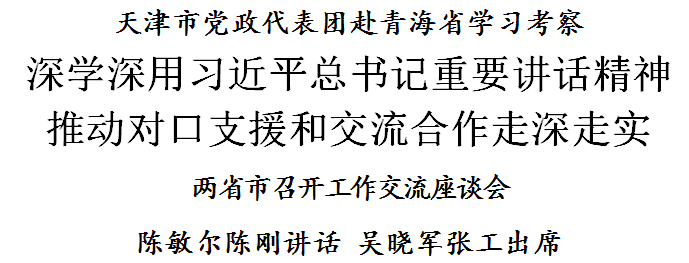陈敏尔代表市委、市政府向青海长期以来对天津工作的支持、对天津援派干部人才的关心表示感谢。他说,今年4月23日习近平总书记在新时代推动西部大开发座谈会上发表重要讲话,为推动西部地区高质量发展擘画了蓝图、指明了方向。对口支援青海省黄南州,是习近平总书记和党中央赋予天津的重要任务。我们要深入学习贯彻习近平总书记重要讲话精神和关于对口支援工作的重要论述,切实增强责任感和使命感,把黄南所需与天津所能结合起来,全力做好对口支援工作,以实际行动体现深刻领悟“两个确立”的决定性意义、坚决做到“两个维护”。强化产业帮扶,做足“土特产”文章,支持黄南州因地制宜发展特色优势产业,打造更多优质农产品品牌,深入开展消费帮扶,进一步拓展市场空间,不断增强当地产业竞争力。强化民生保障,深化教育、医疗帮扶,加强劳务协作,开展职业技能培训,助力提升公共服务水平,促进受援地劳动力稳定就业,切实增强人民群众的获得感、幸福感、安全感。强化智力支持,按需精准择优选派援青干部,加大人才双向交流、两地培训、跟岗锻炼力度,结对子、带徒弟、同攻关、共成长。铸牢中华民族共同体意识,开展慈善捐赠、爱心助学、结对认亲、社会帮扶、文化走亲等活动,促进各族群众交往交流交融。要深化津青交流合作,充分发挥各自优势,在生态环保、绿色算力、对外开放、文化旅游等领域进一步加强务实合作,携手为推进中国式现代化贡献力量。