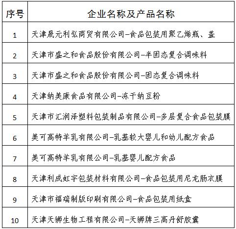 附件:天津晟元利弘商贸有限公司等10家企业食品安全企业标准备案材料