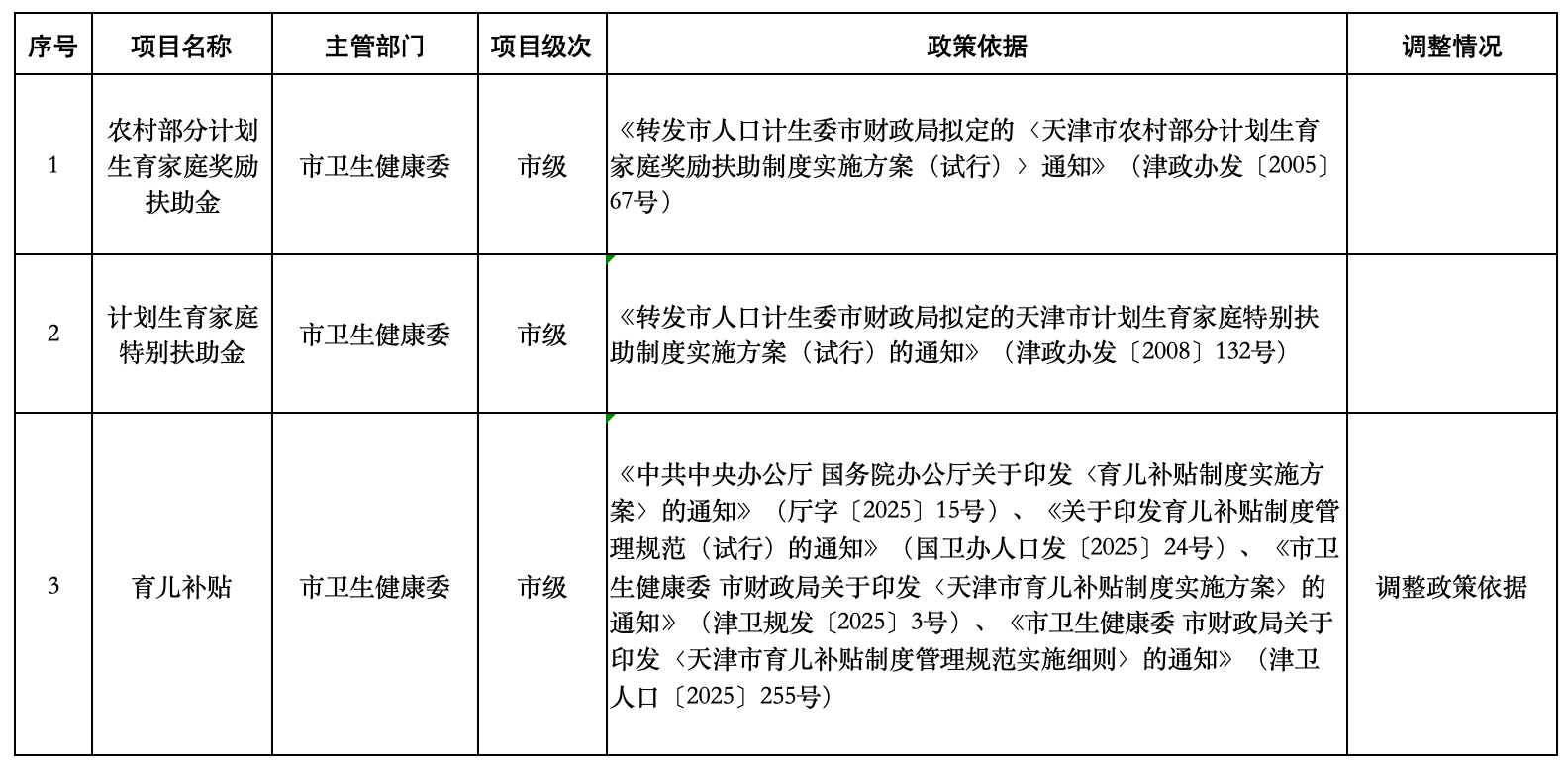 天津市卫生健康委惠民惠农财政补贴“一卡通” 管理改革政策清单 (2025年12月25日调整)